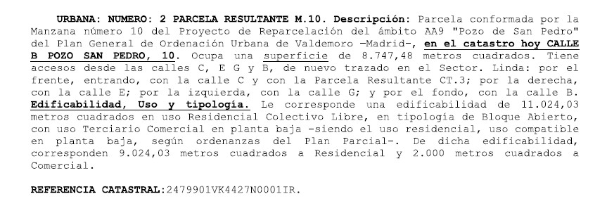 Comentarios: Referencia Catastral: 2479901VK4427N0001IR. Proindiviso del 48,38% Está pendiente de aprobación el PU y de iniciarse OOUU