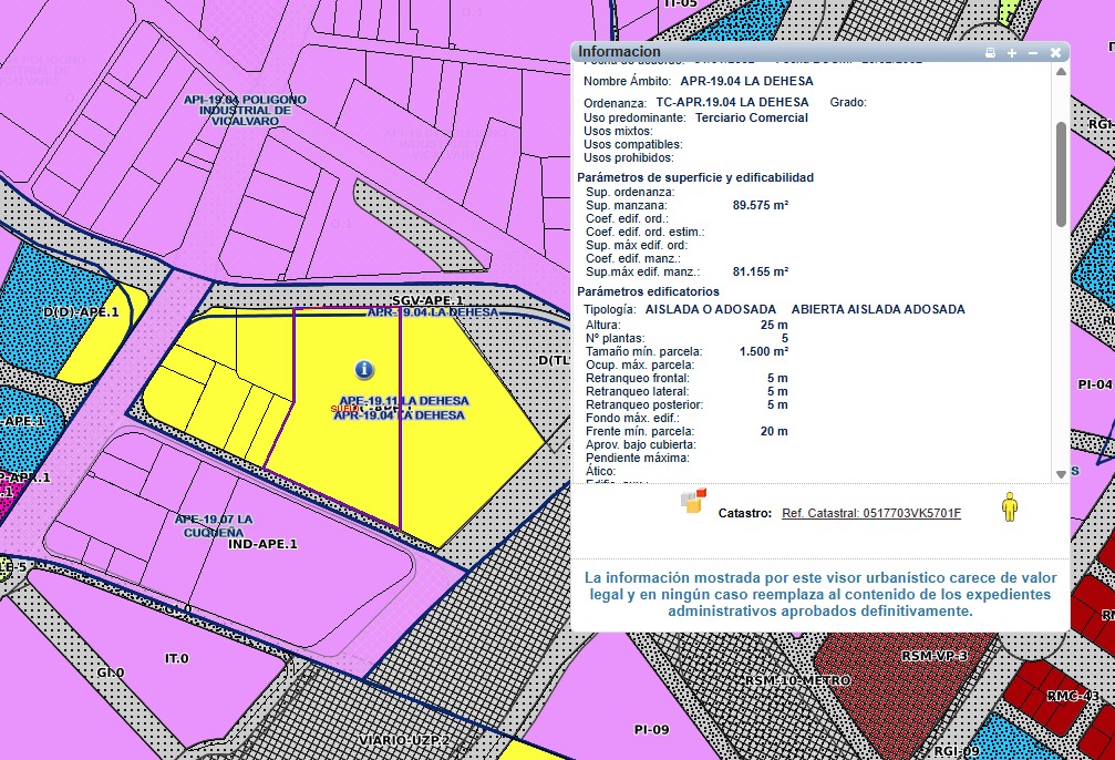 Comentarios: Uso dominante: comercial (Comercial de pequeño y mediano comercio). Edificabilidad máxima unitaria: 0,91 m²/m². Edificabilidad máxima: 28.864,00 m². Alturas máximas permitidas: 5 plantas. Retranqueos: 3 m.a linderos